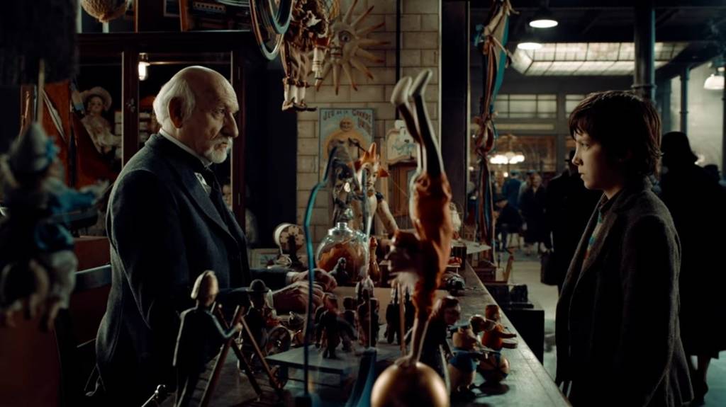 Nearly as important as the settings is the décor that inhabits them. It’s no small feat to recreate 1930s Paris. The world must look real; it must look lived in. Scorsese and his crew achieved this in incredible detail. One could pick out any frame in this movie, and it would be full of items that are all period-appropriate. A perfect example of this is the scene at Georges’s toy booth (Figure 2). In it, we see a side view of the counter and Méliès’s toy counter. Aside from the space immediately in front of Méliès and Hugo, the counter and walls are entirely covered with toys and other knickknacks. All of the toys are appropriate to the period and look as if they’ve spent many years being loved and played with by a child. There’s so much detail that could be missed by a casual viewing. In fact, once I had stopped at this moment, I spent some time just exploring the space and studying the different items. It reminded me so much of the old I Spy hidden items books that I used to look at when I was a child in the 1990s.