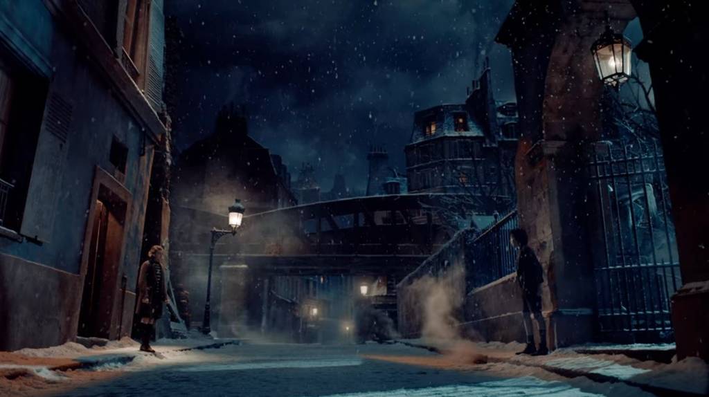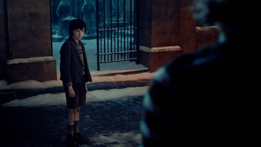 As this is a period movie, how the characters look is very important. The costume department clearly put a lot of time and effort into creating an exhaustive variety of costumes for not just the main characters but all of the extras. The film is set in 1931, so the costumes are a good mix of the 1920s- and 30s-era styles. The best scenes to see this variety are those in the train station (Figure 7). We see hats such as cloches and bowlers mixed with Trilby hats and even some stereotypical French berets. Women are seen in day and formal dresses frequently worn during the period, while men are generally seen wearing suits. Aside from indicating the period that the film is taking place in, the costumes are also used effectively to indicate the status and class of the characters in the film. This is especially noticeable with the main character Hugo. For much of the film, Hugo wears the same outfit. A sweater with a collared shirt covered with what looks to be a tweed jacket. Despite the cold, he’s wearing shorts with shin-high socks and shoes that are worn out. His skin and outfit are dirty (Figure 8). In the flashback scenes, when he still has his father, Hugo’s clothing is cleaned and well kept, with no dirt to be seen. Interestingly, in the last flashback, when his uncle comes to get him after his father dies, we see Hugo is wearing the same sweater and shirt that he wears throughout the film, except that it’s clean and looks new (Figure 9). This was a conscious decision by costume designer Sandy Powell. In an interview published in Children & Libraries, Brian Selznick, the author of the book The Invention of Hugo Cabret, noted that “her idea was that Hugo, having moved to the train station quite suddenly, didn’t bring any clothing. So he’s still in the clothing he brought with him, and everything is getting small on him. His sleeves are halfway up his arms and his pants are too short” (Brown).