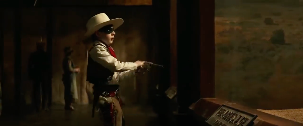 Figure 2. Will (Mason Cook) reenacts colonial violence by repeatedly “shooting” Tonto with his toy gun, highlighting generational desensitization. Gore Verbinski (dir.), The Lone Ranger, 2013. USA. © Walt Disney Pictures.